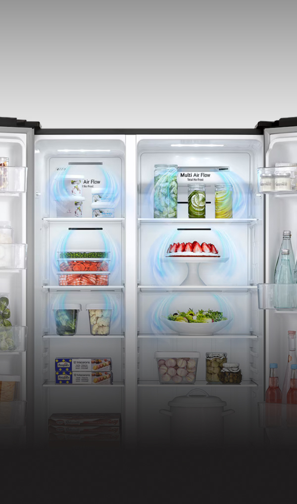 El aire fluye en todas las direcciones para mantener la comida fresca por más tiempo.